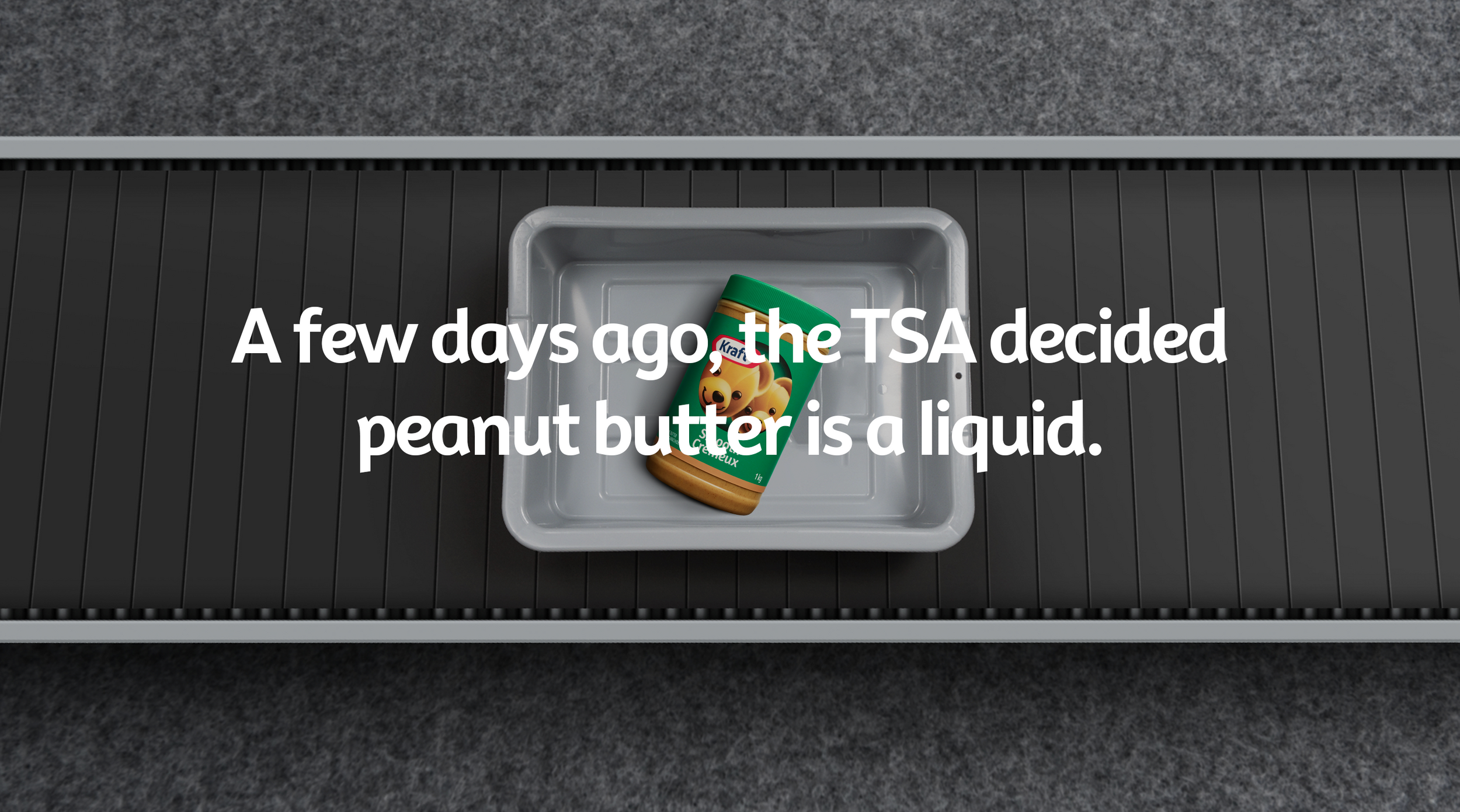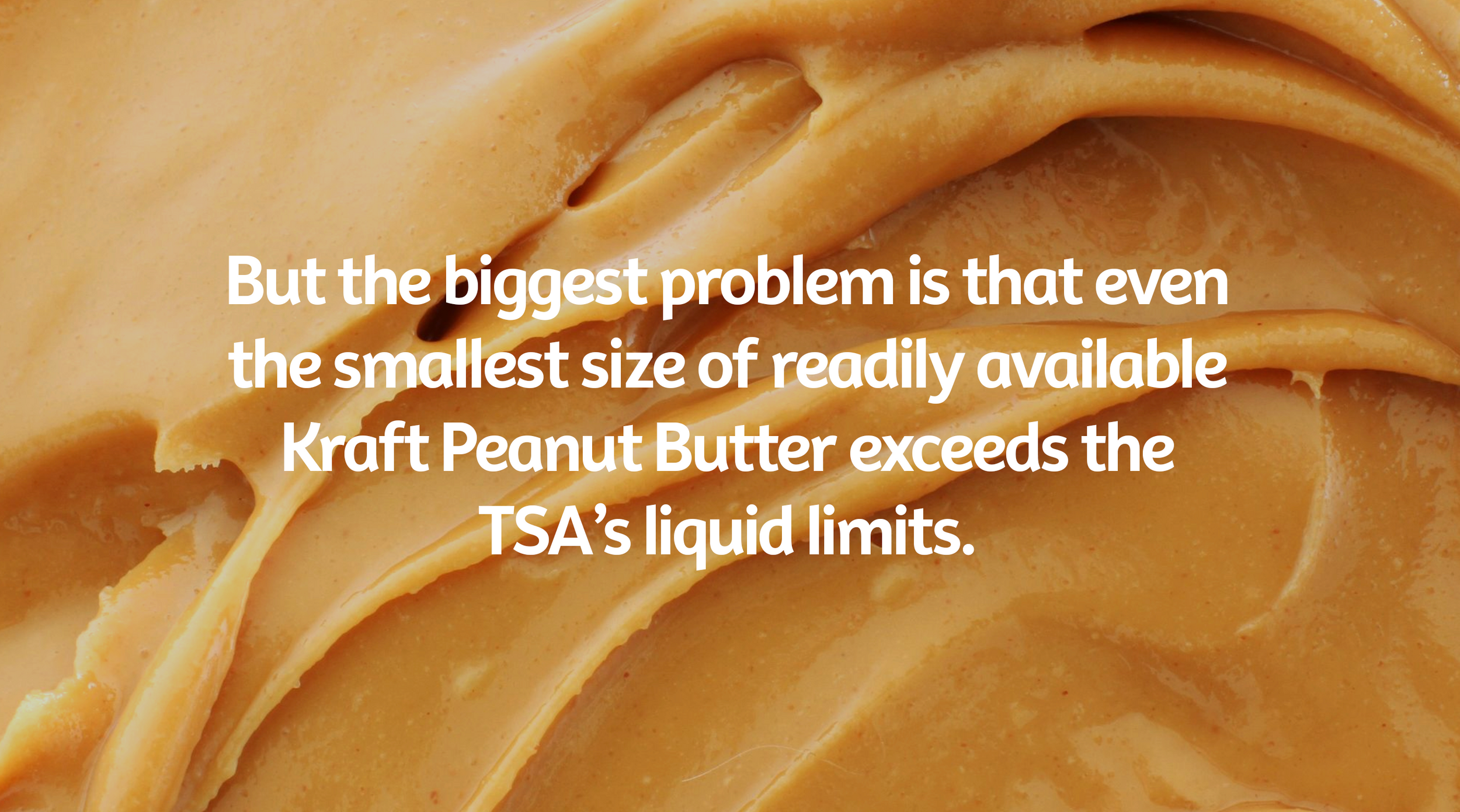 The TSA declared peanut butter a liquid and the internet was understandably peeved. So we came up with a quick reactive idea that allowed Kraft to leverage Canadians' deep seated love for KPB quickly and nimbly. And made us the first and only brand with a solution to the problem.